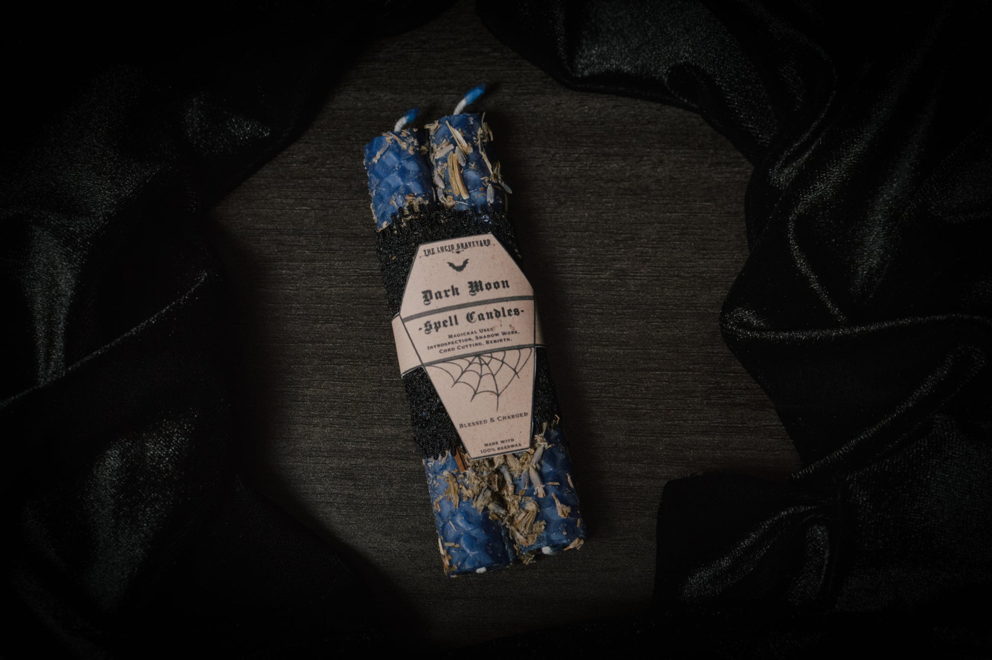 Hand-rolled with care, our Dark Moon Spell Candles stand approximately 4 inches tall and 1/2 inch in width, although slight variations in size may occur due to their handmade nature.