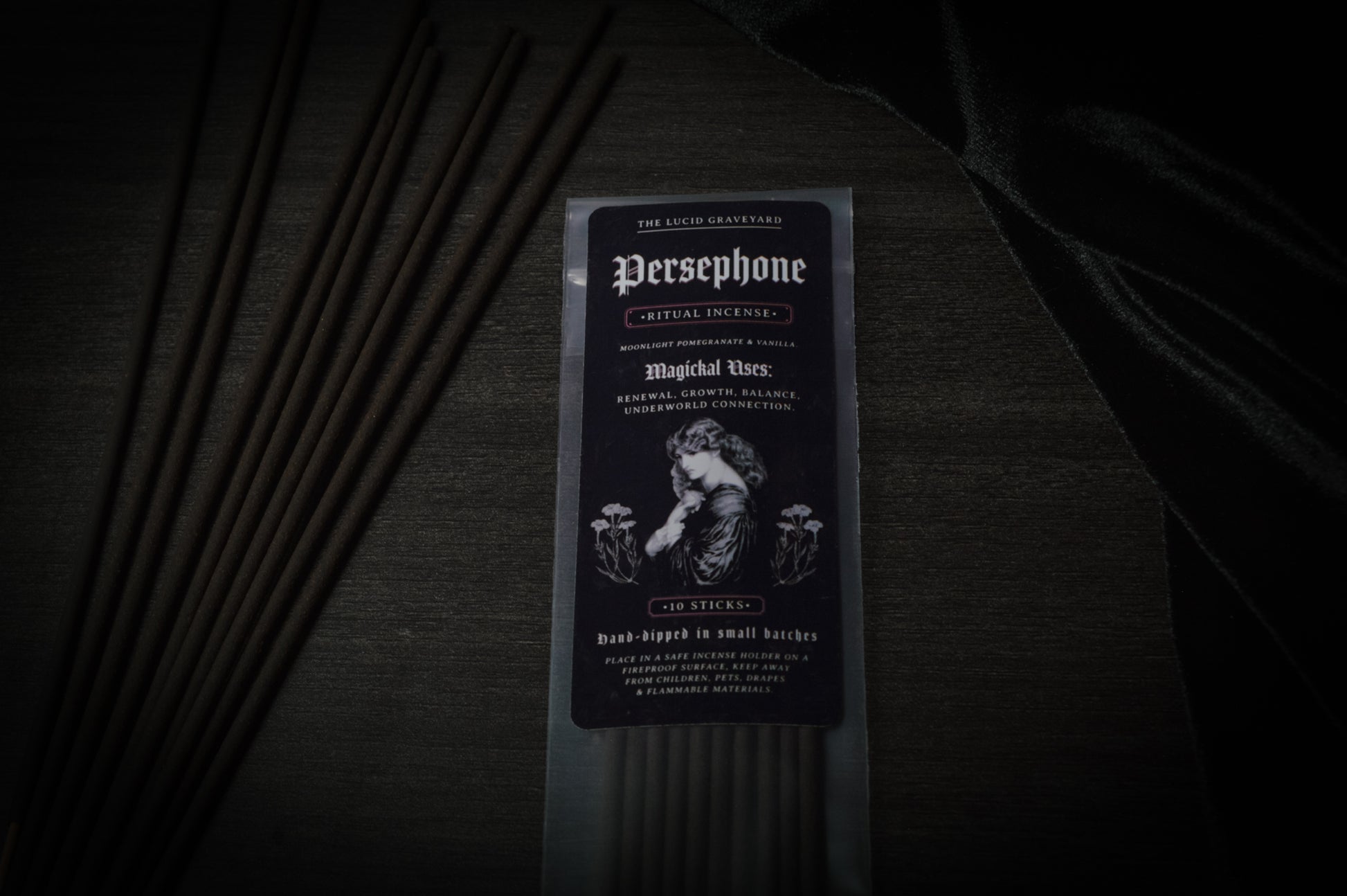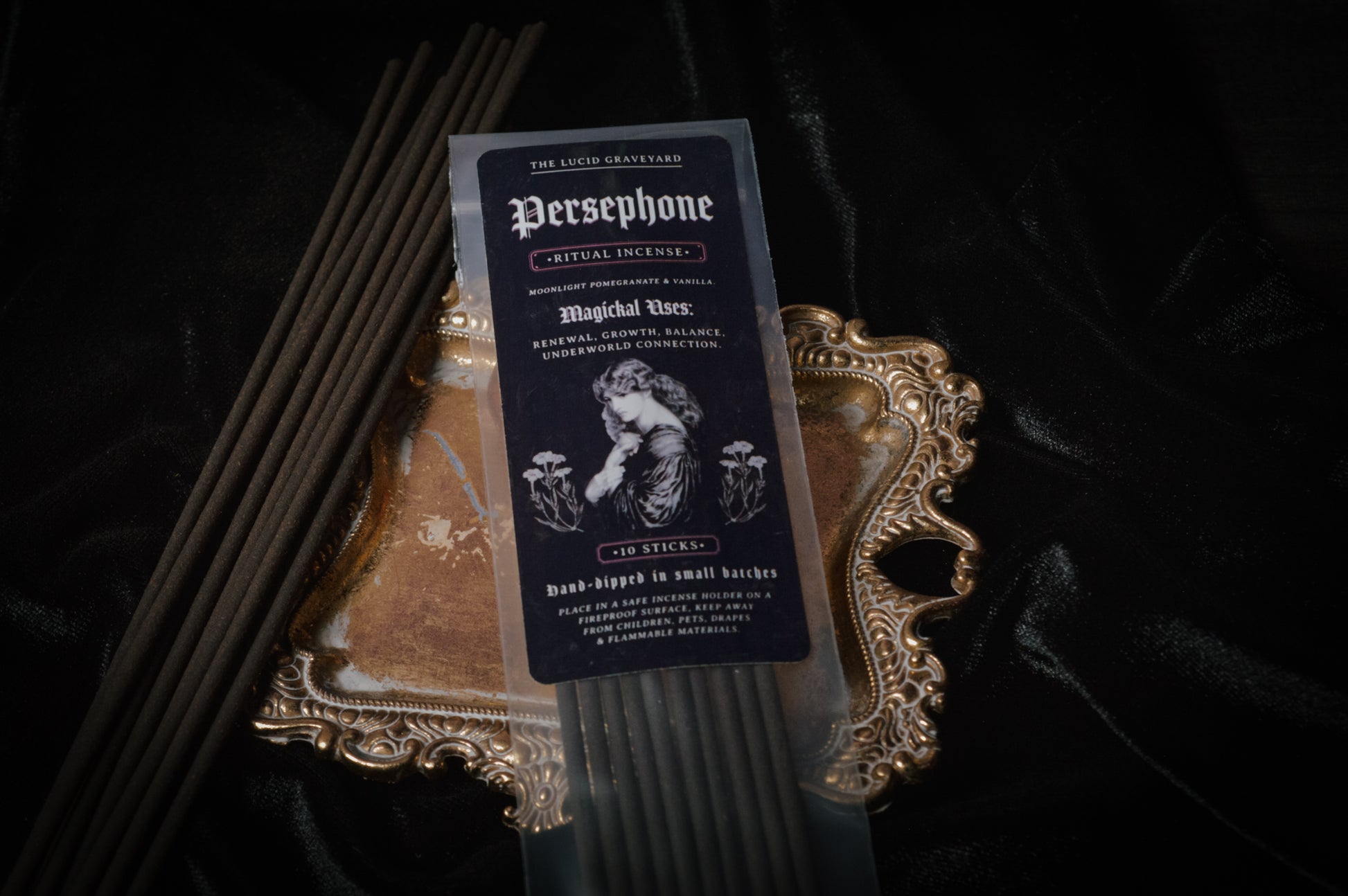Enhance your magick with our Persephone incense, crafted to help you embrace renewal, gain balance, draw in abundance, enhance your nature magick, connect with the underworld and honoring goddess Persephone.