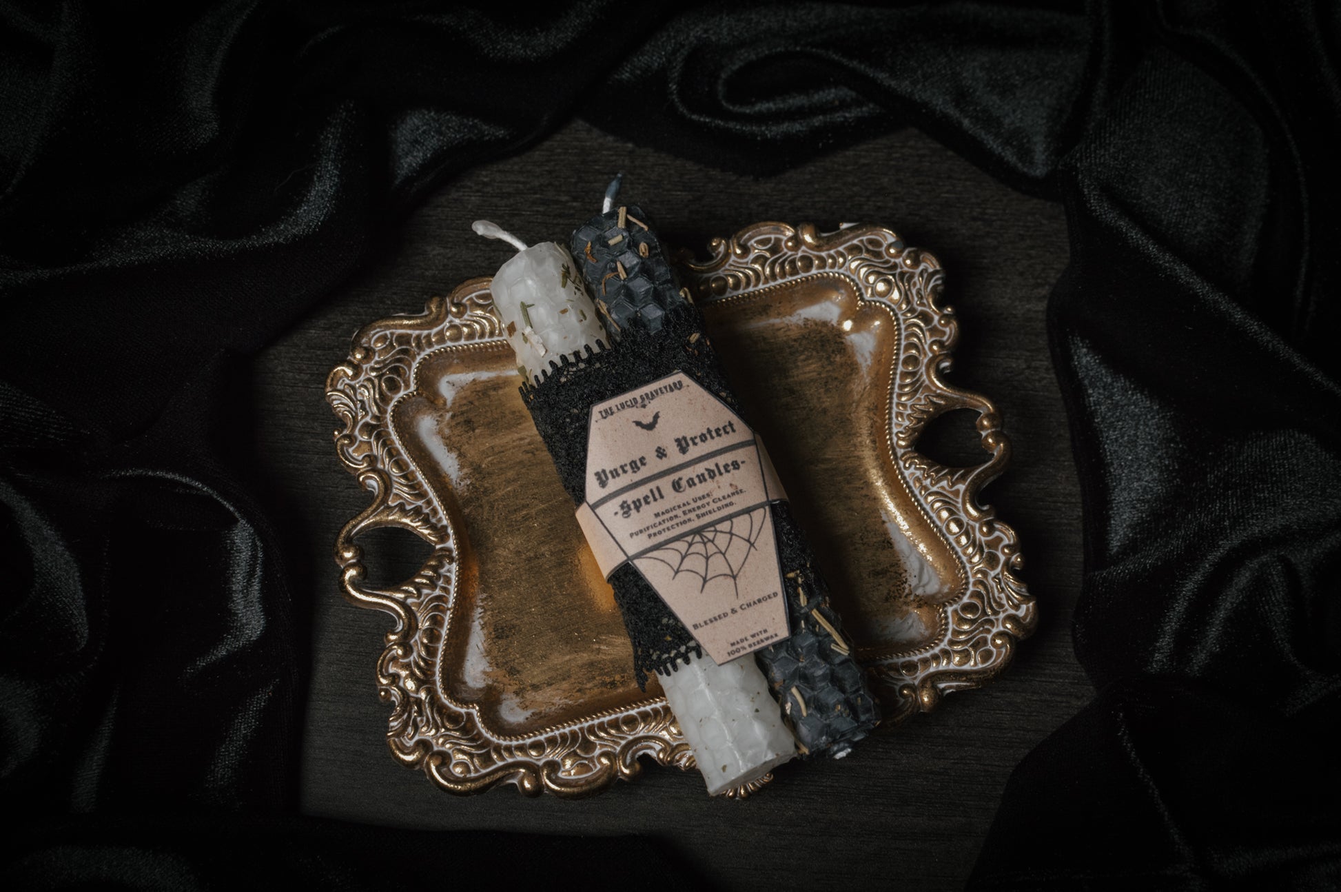 Made with 100% beeswax and dressed with herbs, each candle is blessed and charged with intention and magick.